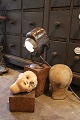 i afpudset metal med super patina fastmonteret på massiv gammel egetræs piedestal. (Kan bruges som bordlampe)
