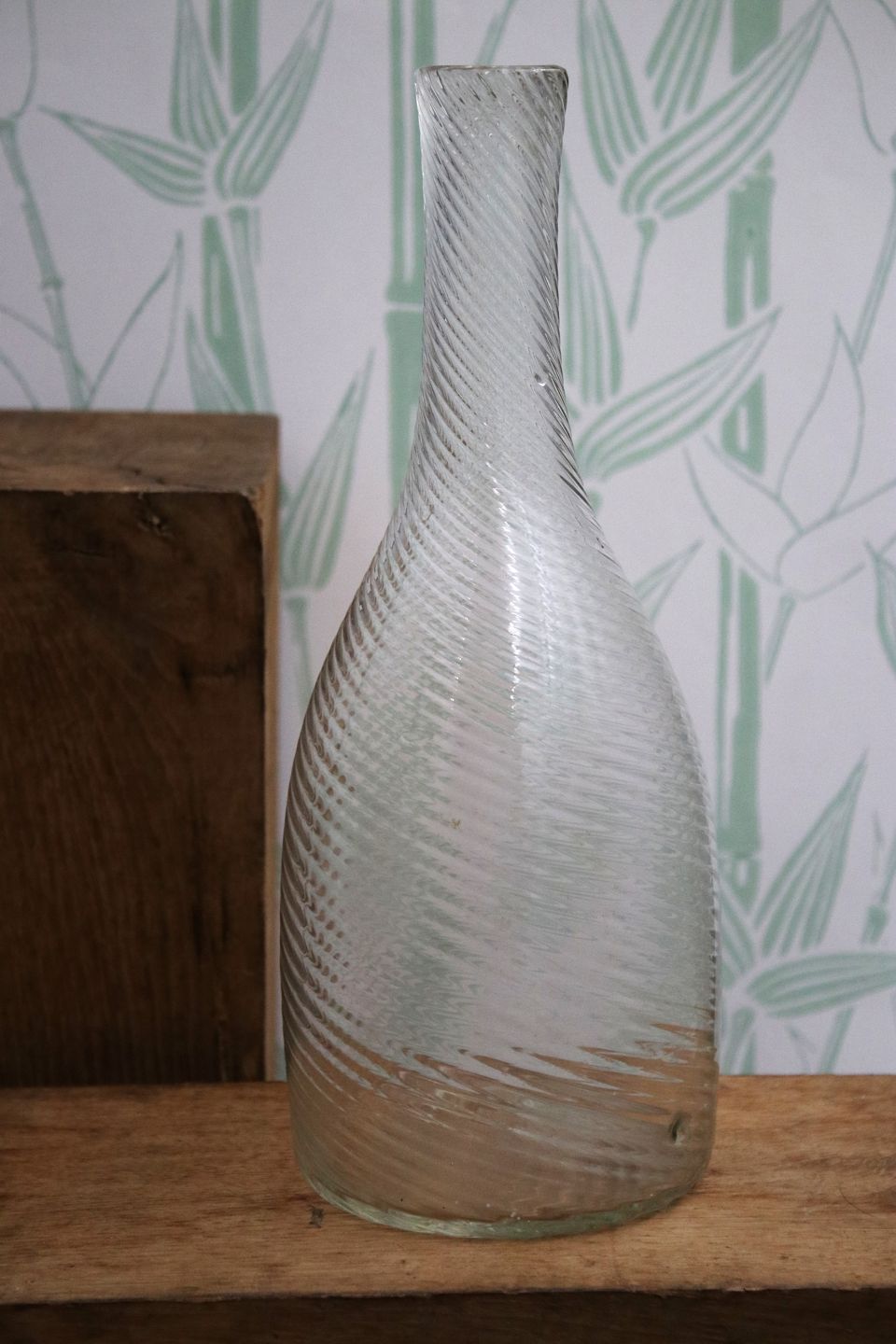Antik , svensk karaffel i snoet mundblæst glas. H: 26cm. Dia.: 10cm. Emne nummer: Svensk snoet glas karaffel 2