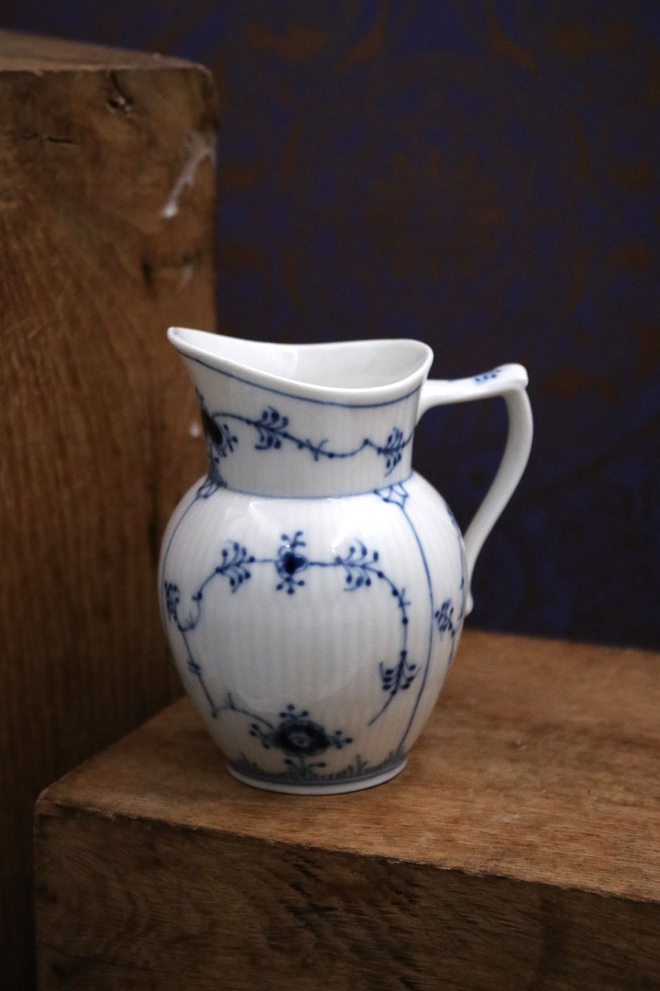 Royal Copenhagen , Musselmalet Riflet flødekande.
