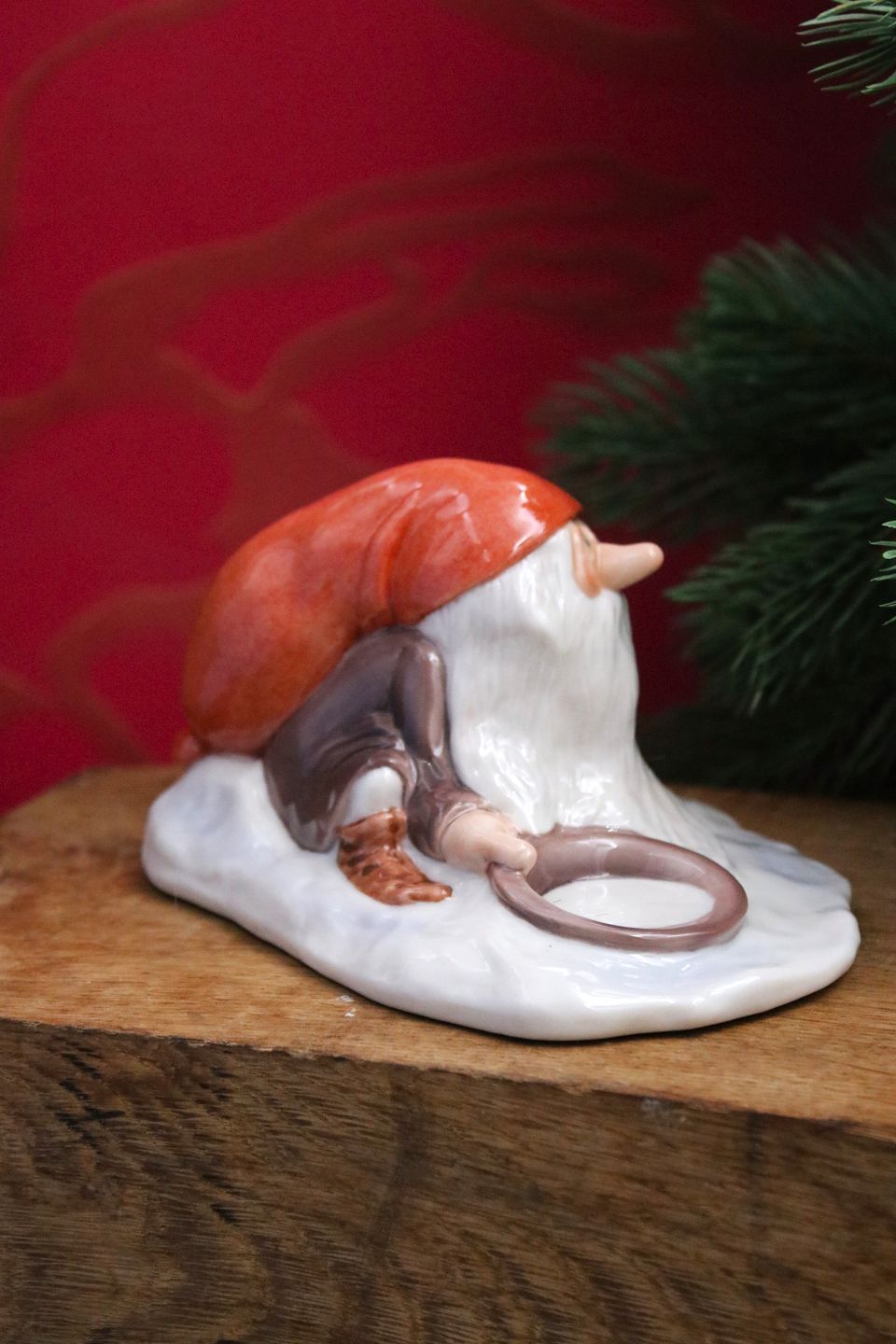 Royal Copenhagen jule porcelæns figur af julenisse med grødskål