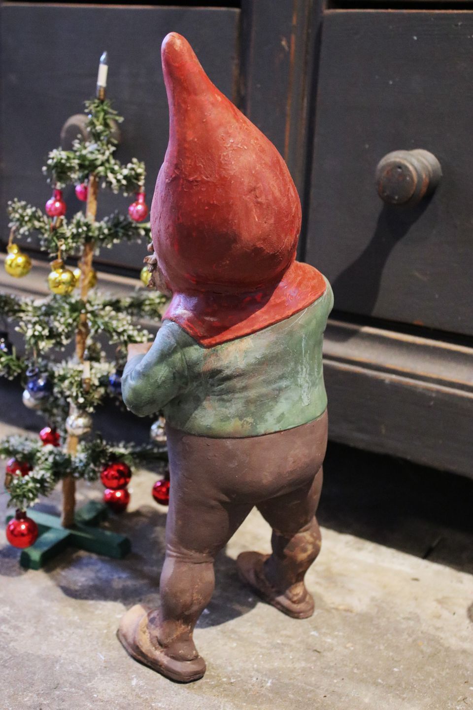 Antik terrakotta nisse med gammel bemaling og en fin patina. Højde: 36,5cm. Emne nummer: Antik terrakotta nisse nr.1