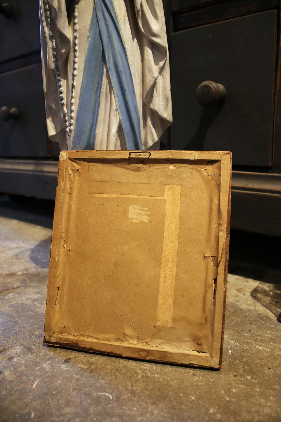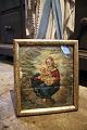 Antikt håndmalet akvarel maleri af Madonna med Jesusbarnet , indrammet i gammel sølvramme med fin patina. Måler: 22x19cm.