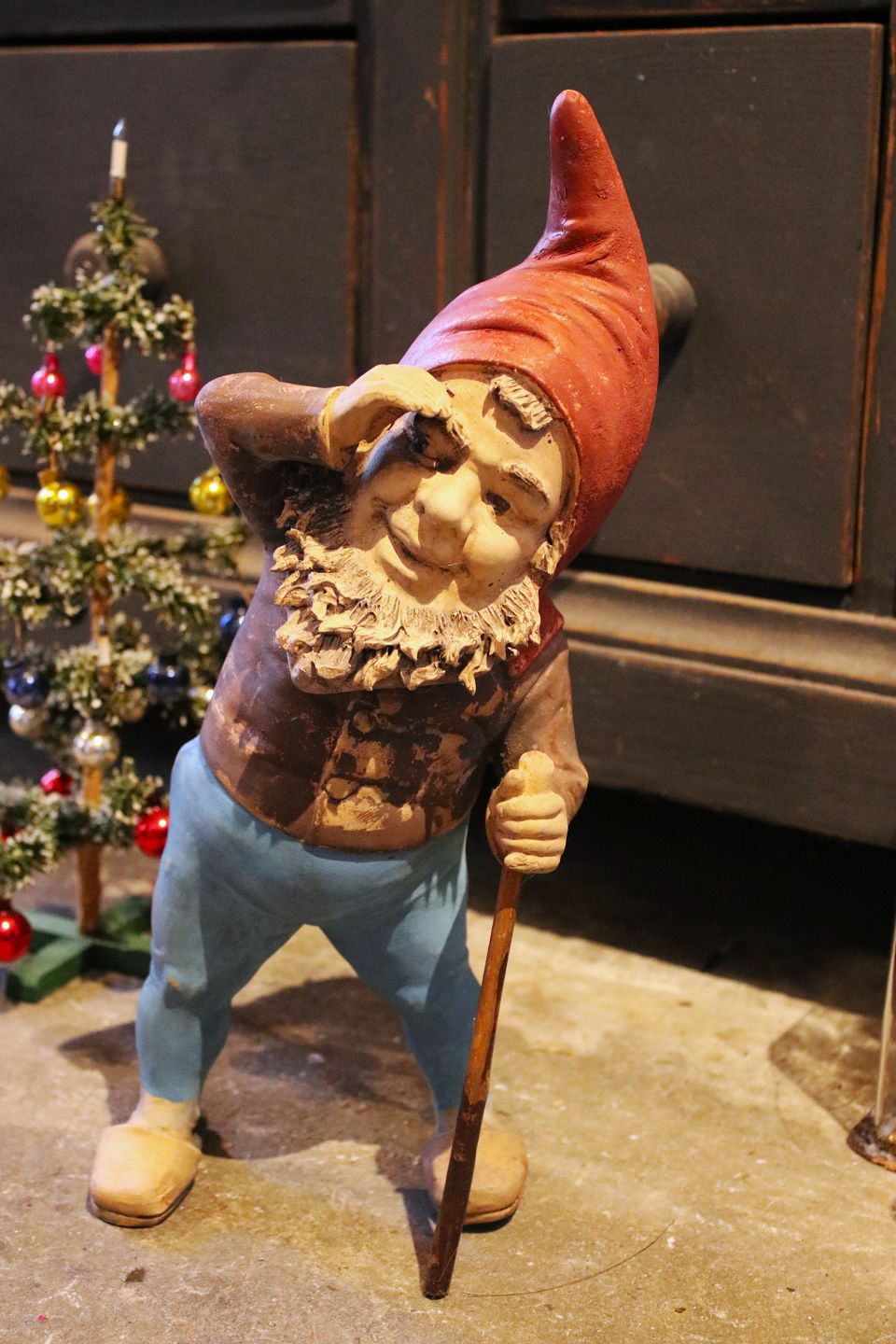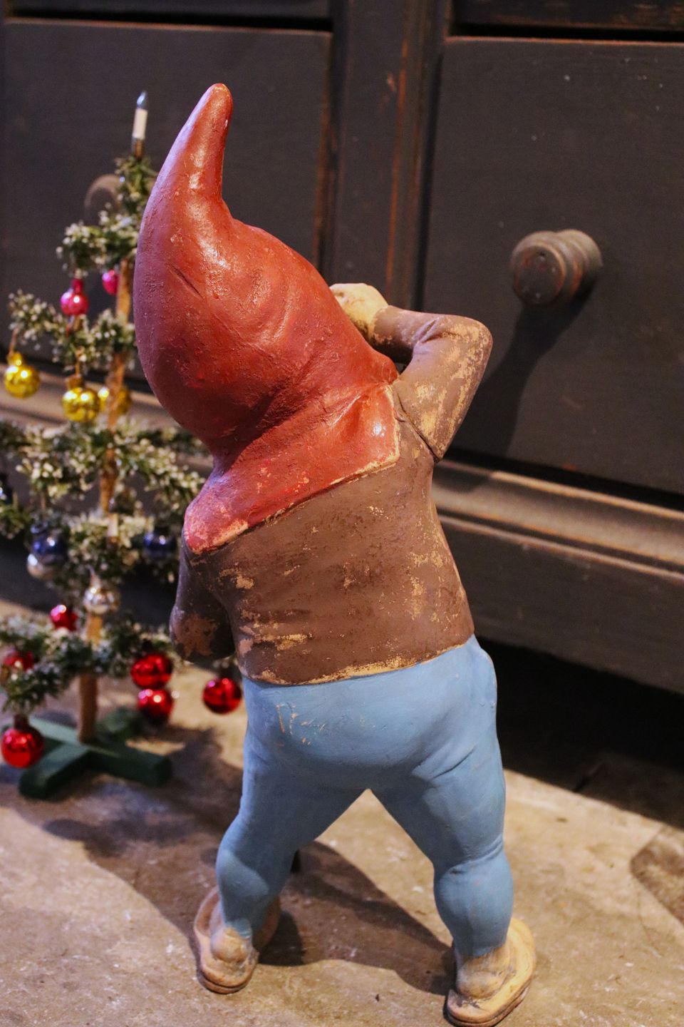 Antik terrakotta nisse med gammel bemaling og en fin patina. Højde: 36cm. Emne nummer: Antik terrakotta nisse nr.2