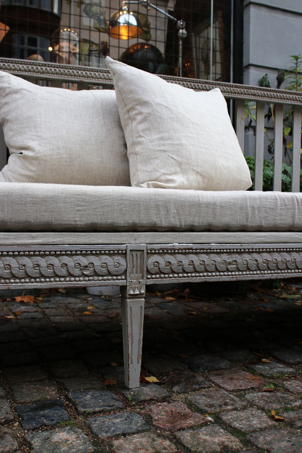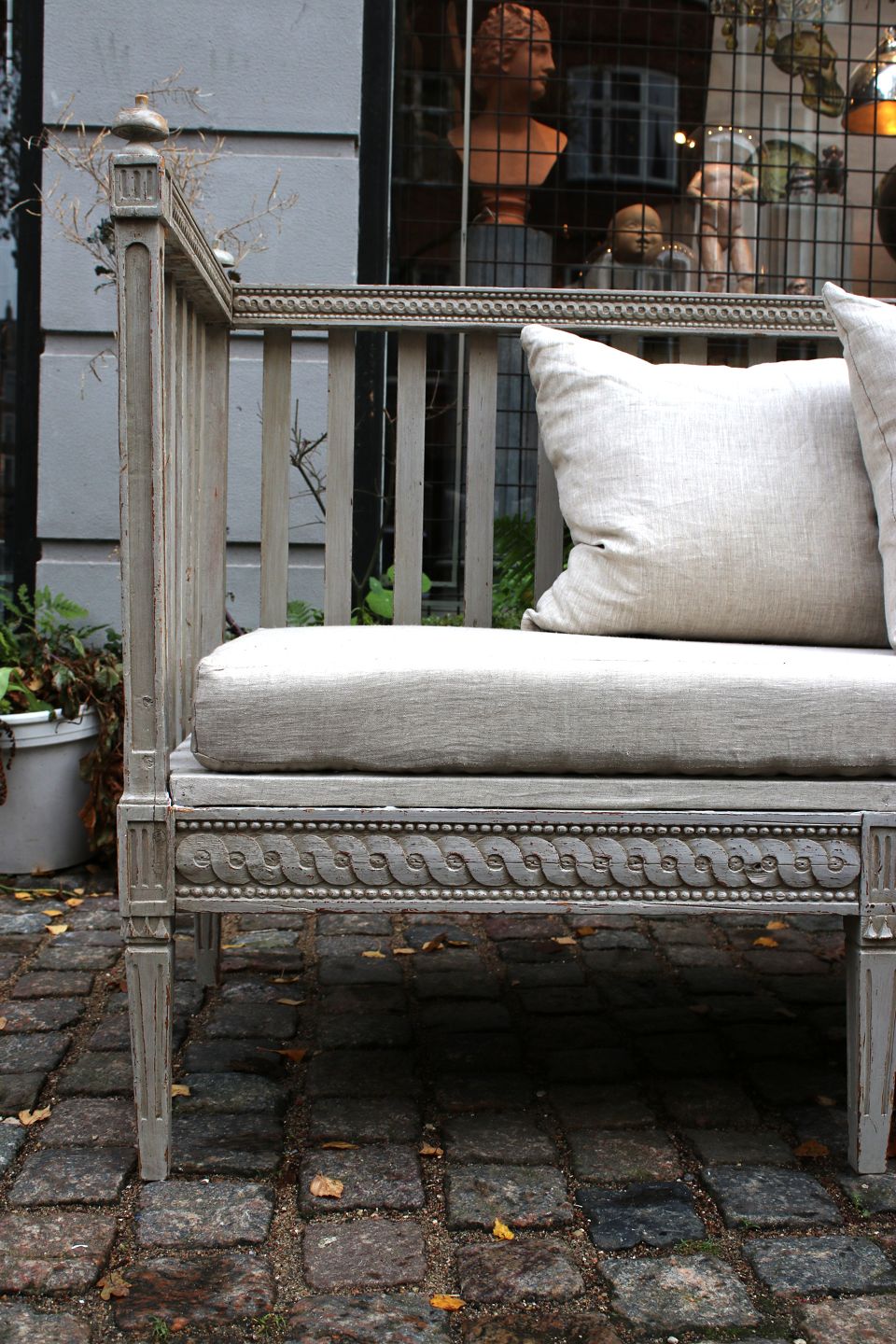 Gustaviansk svensk 1800 tals sofabænk i original grå farve