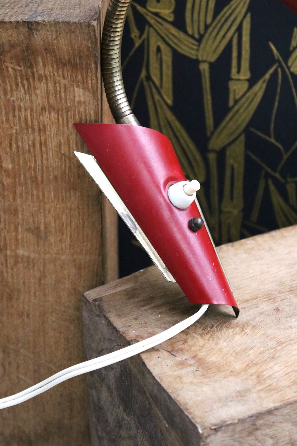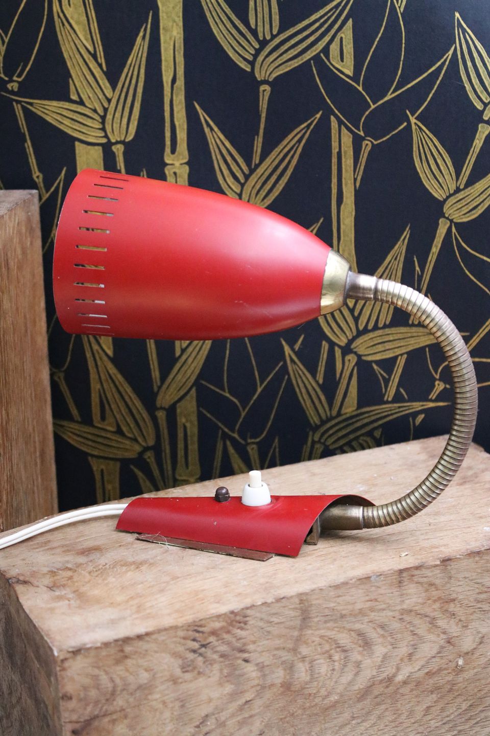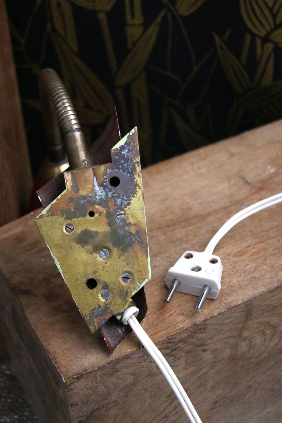 Et par gamle retro væglamper i rødmalet metal og messing fra 50érne...