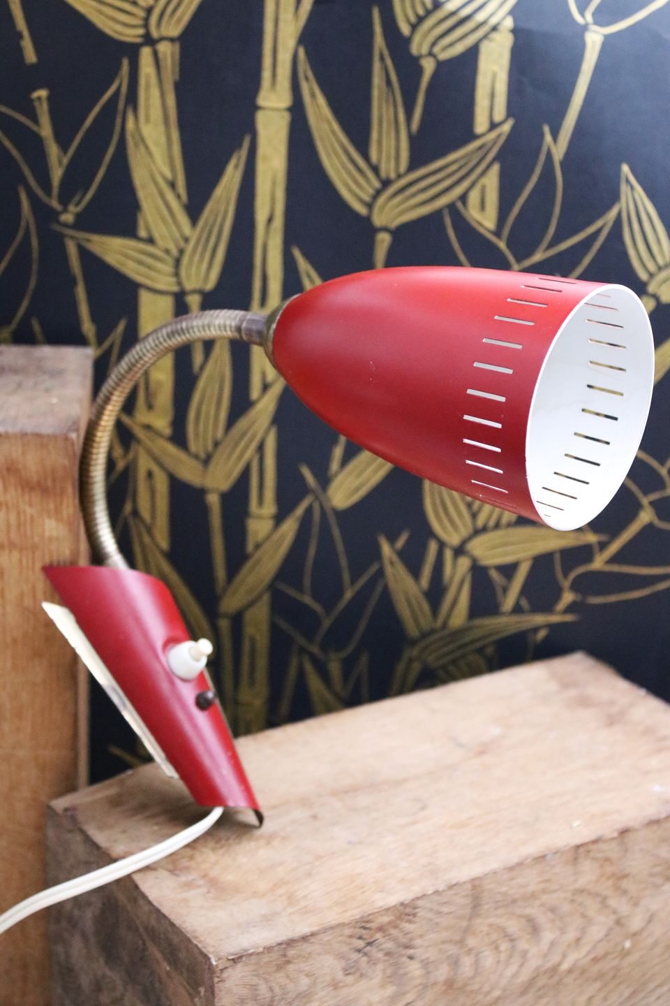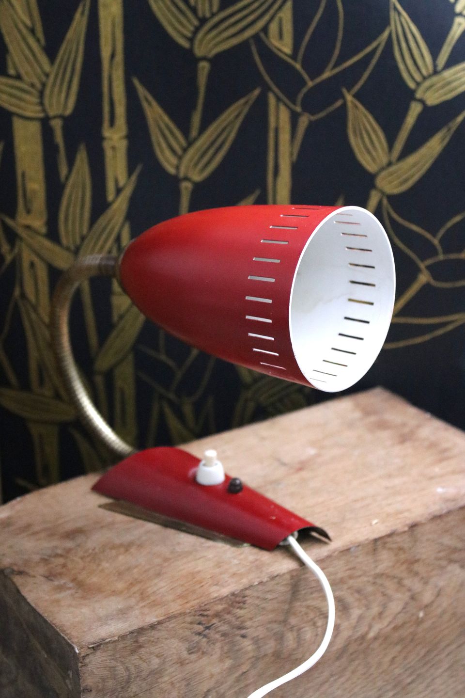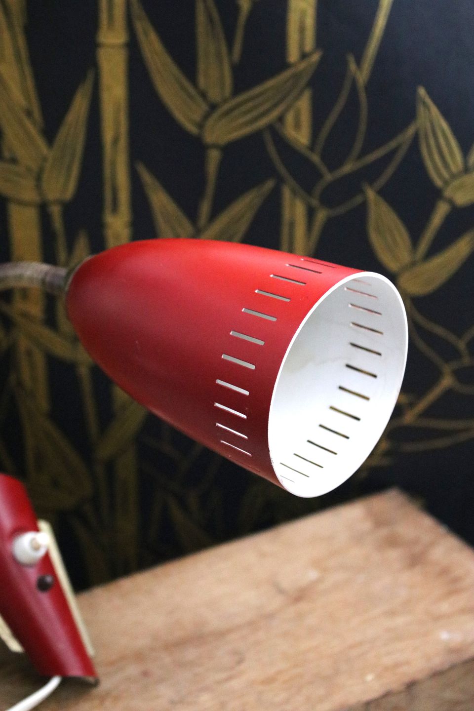 Et par gamle retro væglamper i rødmalet metal og messing fra 50érne...