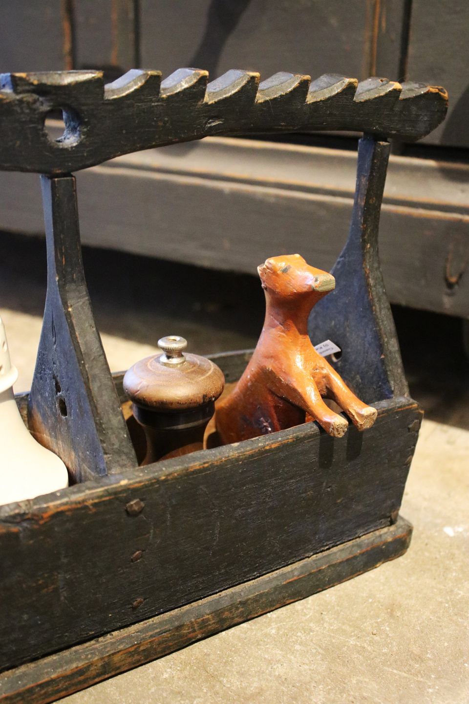 Gammel 1800 tals svensk opbevarings kasse med original farve og håndtag til opbevaring af småting.