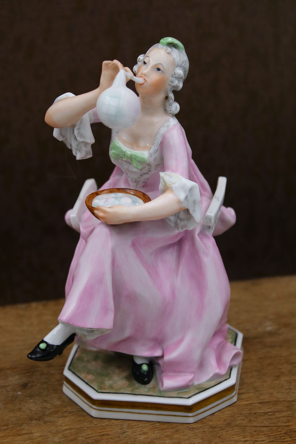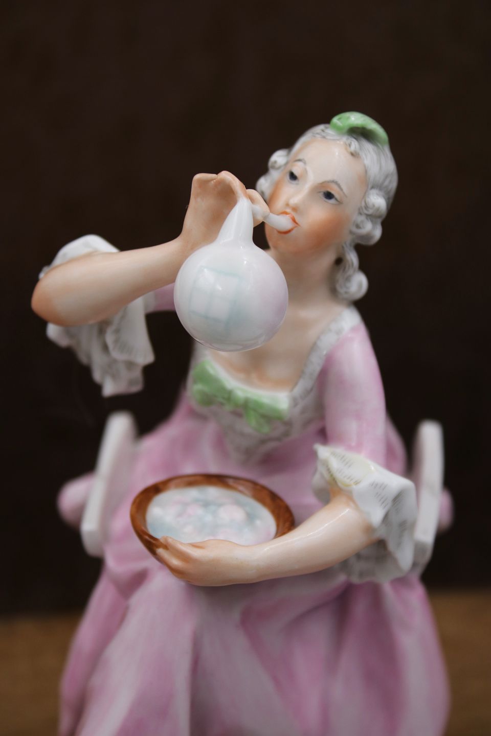 Bing & Grøndahl porcelænsfigur af siddende kvinde der blæser sæbebobler , designet af Tegner.