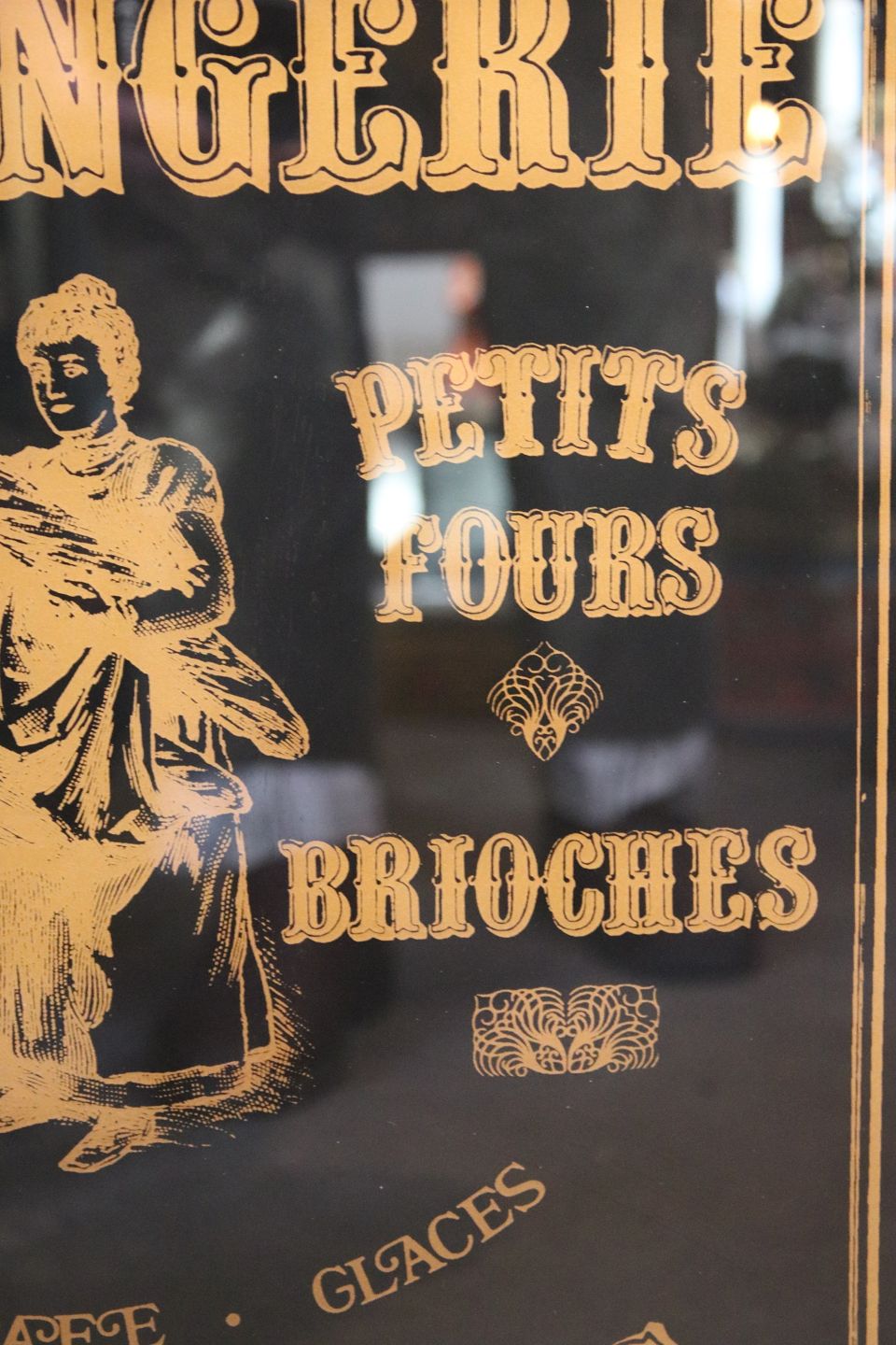 Reklame skilt fra en gammel fransk konditor / bageri , malet på glas "Boulagerie"...