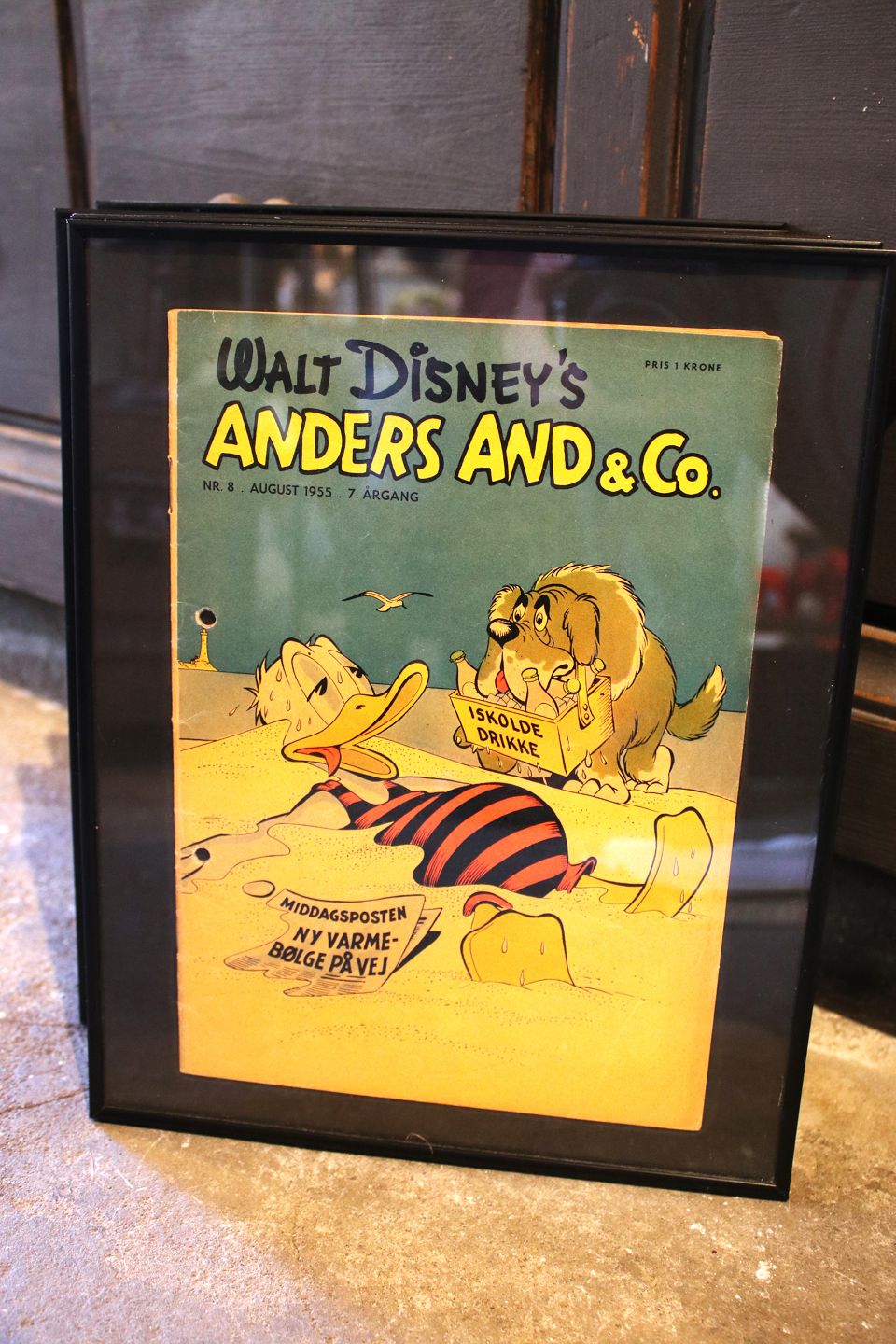 Dekorative , gamle Walt Disney Anders And blade fra årgang 1954 & 55 , er indrammet i sort ramme. 30x24cm...