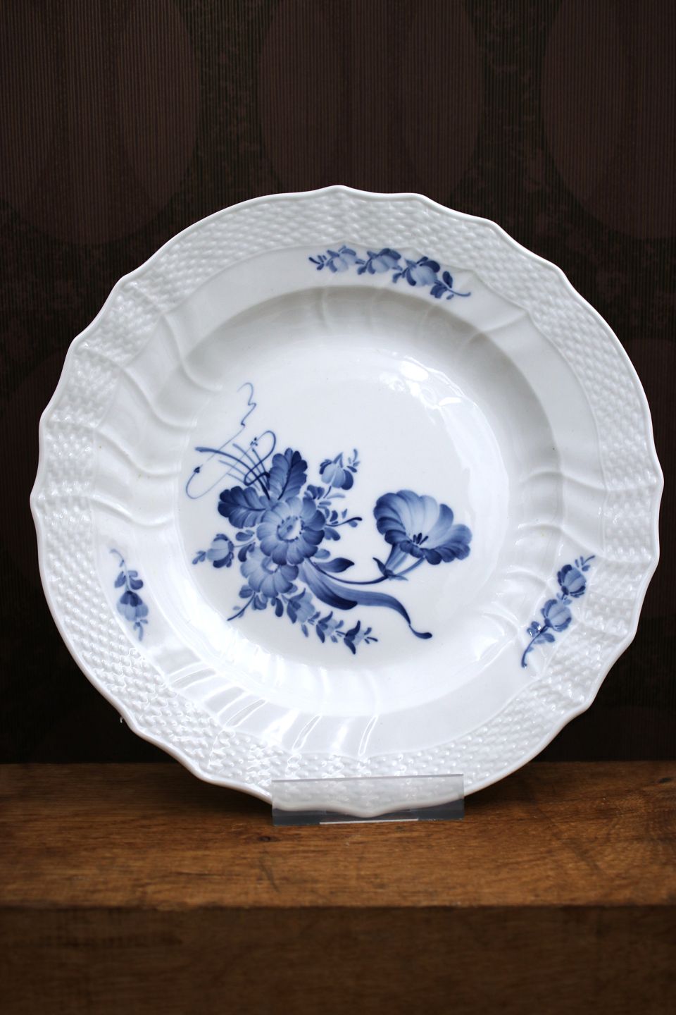 Royal Copenhagen Blå Blomst Svejfet stor middagstallerken.