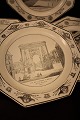 French 1800 century , 8 edged lunch plates with pearl edge in cream colored pipes with motifs of famous buildings and places in Paris.