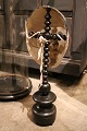Decorative, old clown mask in painted papier-mâché mounted on old black painted wooden base. H: 44cm. W: 16cm. Item number: Klovnemaske