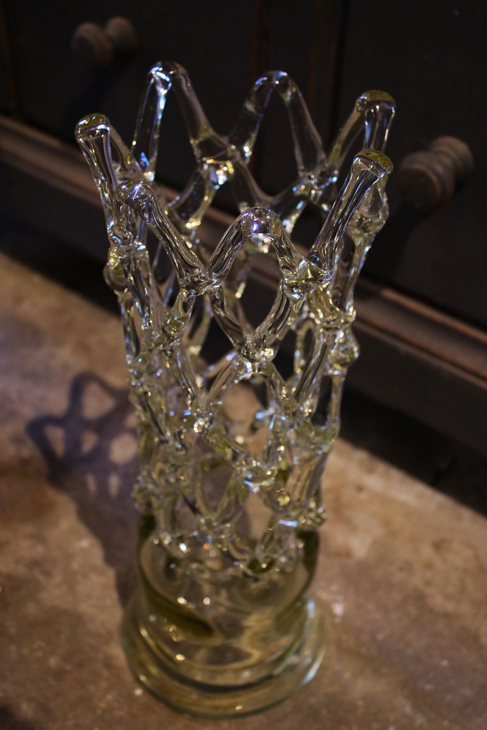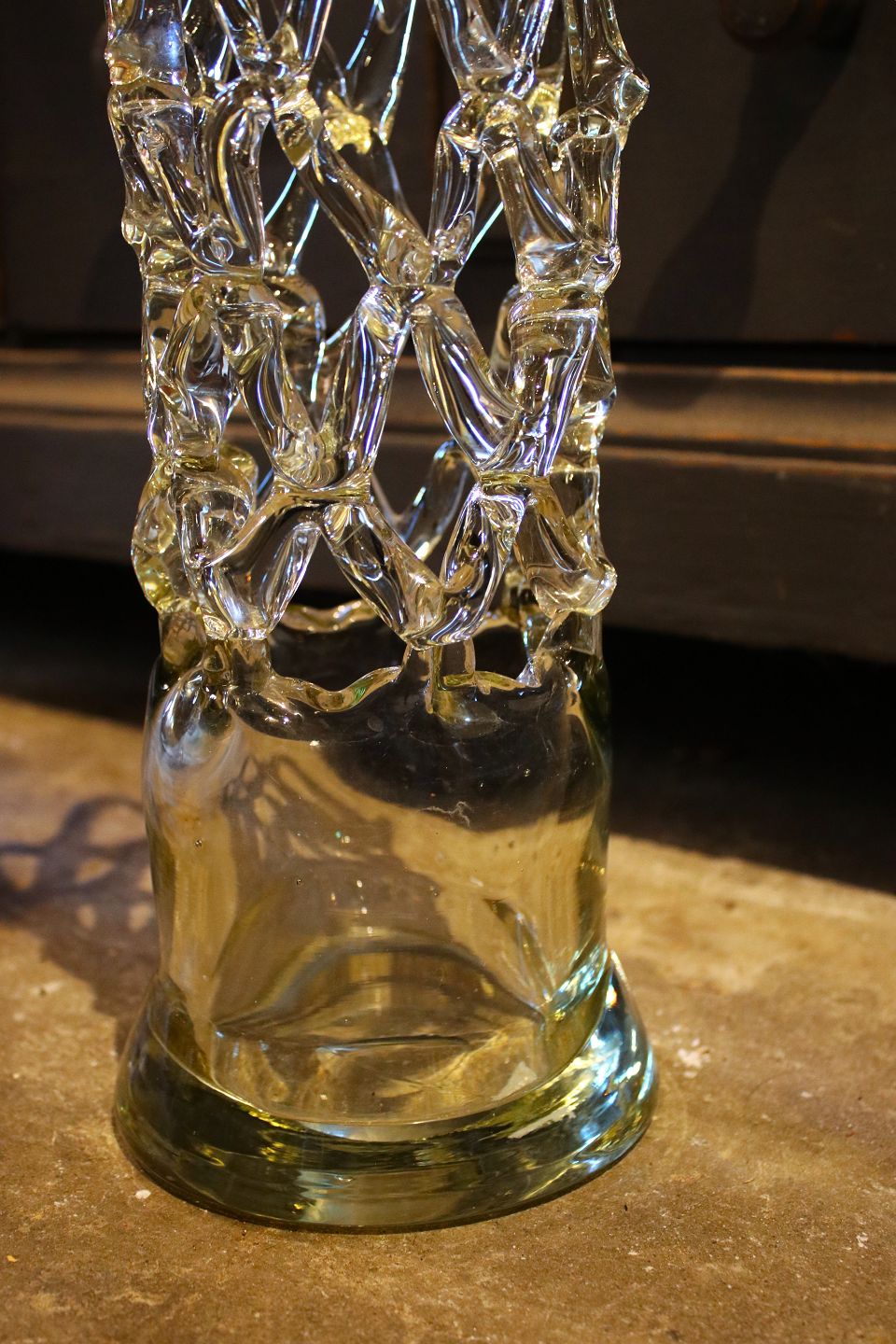 Fine old, decorative sculptural mouth-blown glass vase in delicate green color. H: 37.5cm. Dia.: 15cm.