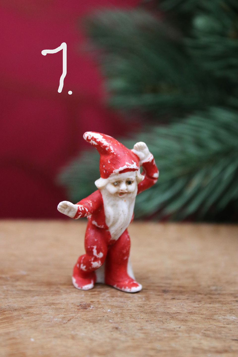 Small old biscuit gnomes with fine patina. 1) H: 4.5cm. 2) H: 4.5cm. 3) H: 2.3cm. L: 5cm. Item number: Små biskuit nisser