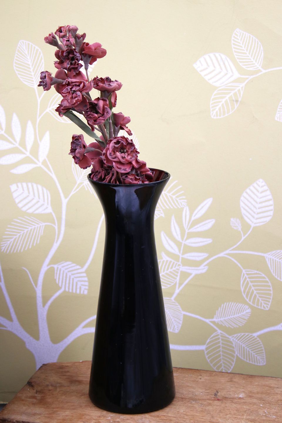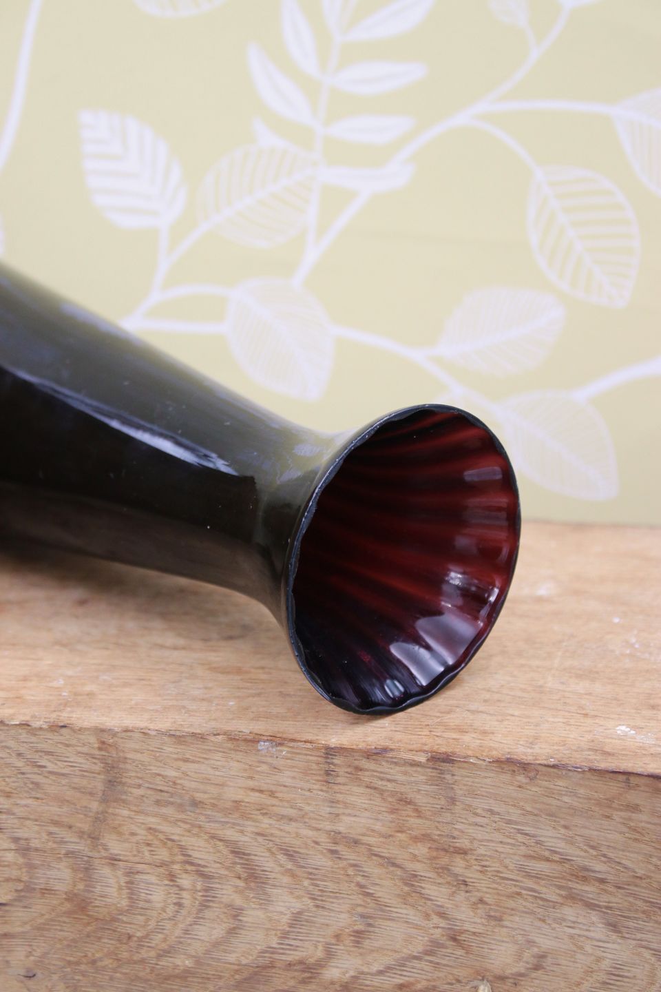 Old mouth-blown margan colored hyacinth glass. H: 21cm. Dia.: 8cm. Item number: Margan farvet hyacint glas