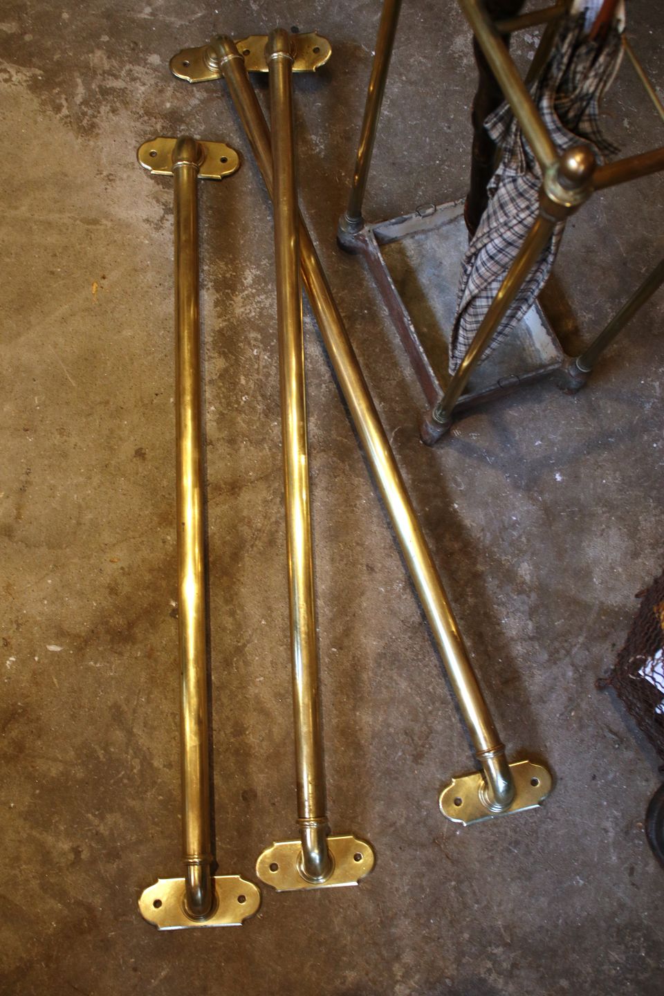 Old brass rods to screw onto the wall in strong quality and with a really nice patina. Length: 106cm. - 2 pcs. Length: 96cm. - 1 pc.