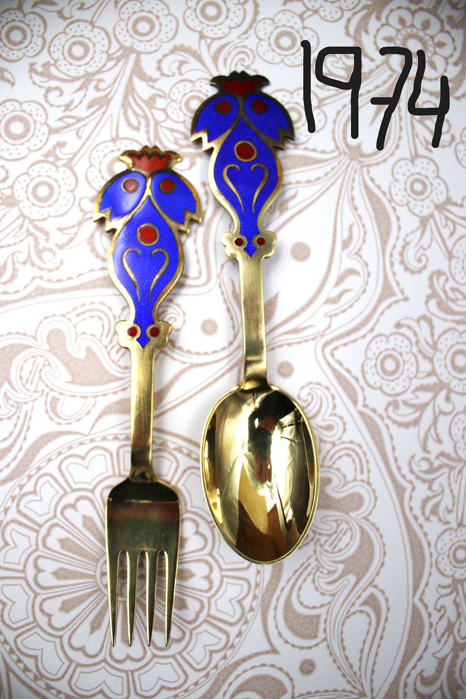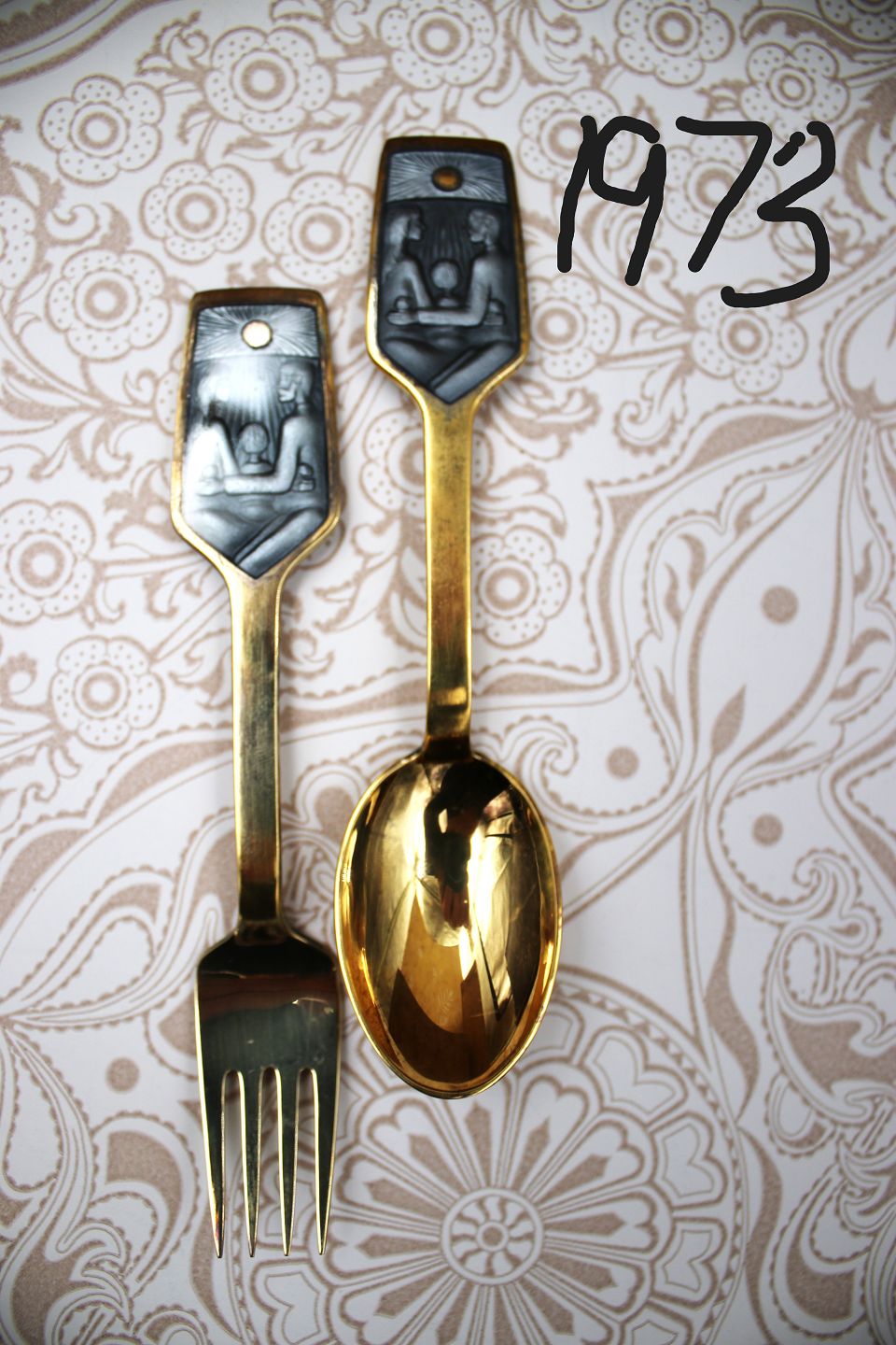 1973: Spoon - Fork, 1974: Spoon - Fork: PRICE: 600 kr. per piece. , 1975: Spoon - Fork, 1976: Spoon - Fork, 1977: Fork,