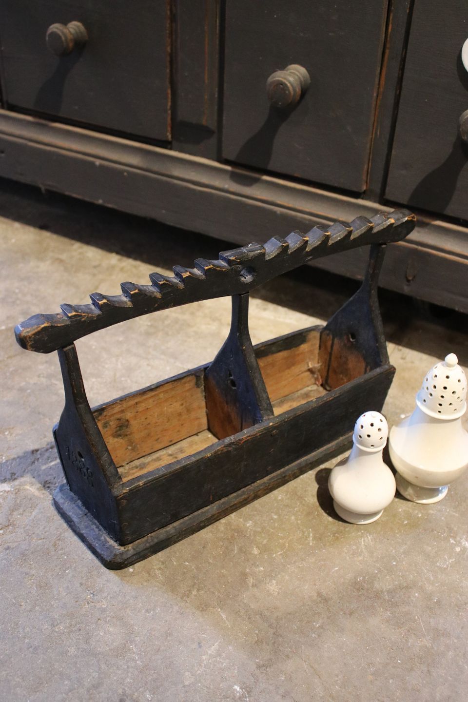 Old 19th century Swedish storage box with original color and handle for storing small items...
