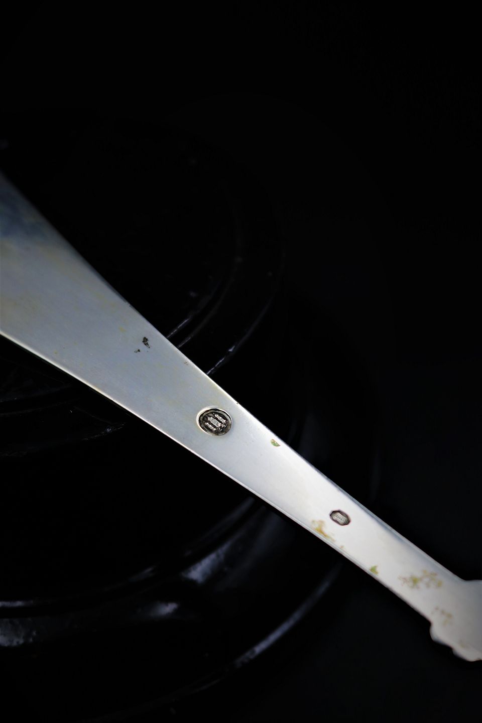 Stor fin potageske i sølv ( Stemplet ) med musling. Længde 36,5cm. Emne nummer: Potageske i sølv med musling