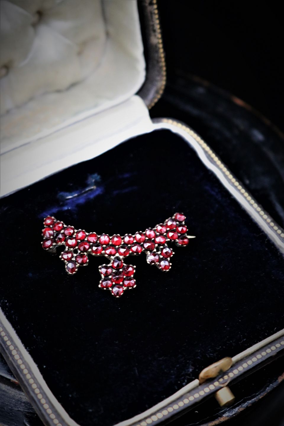 Fin , gammel broche med smukke røde granater. 4x2,5cm. Emne nummer: Smykke 202