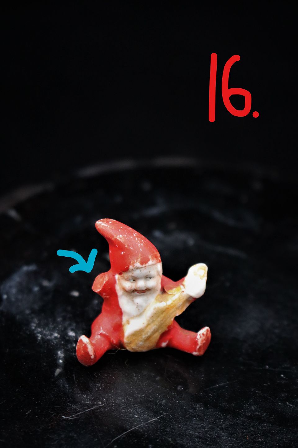 Små søde gamle biskuit nisser med instrumenter... 16) H:3cm. ( afslag på arm ) - PRIS: 100 kr. Emne nummer: Biskuit nisser