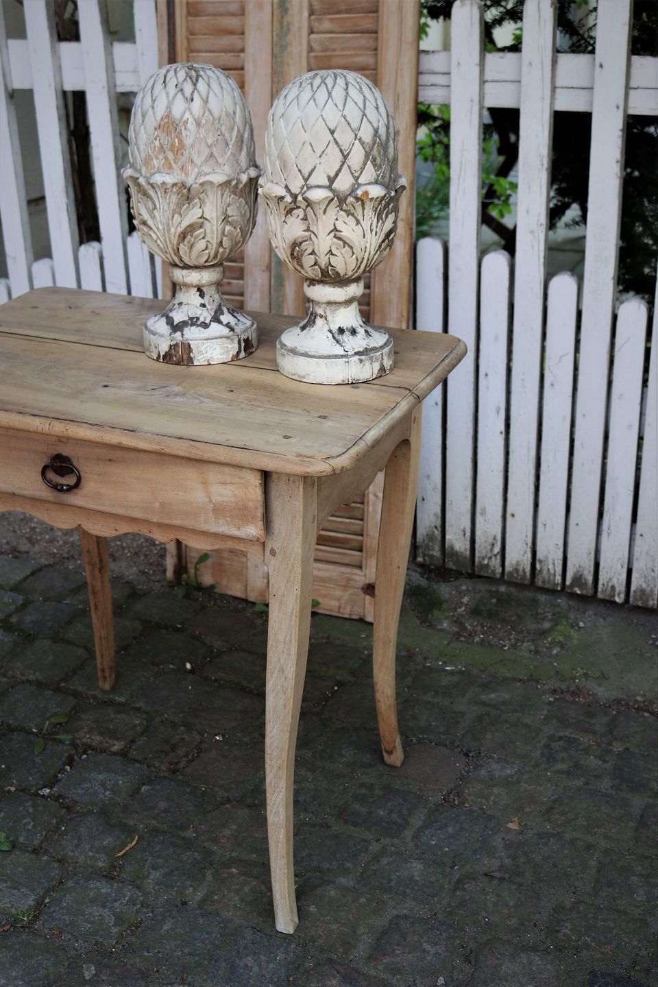 Antikt , fransk Louis d.XV konsolbord fra sidst i 1700 tallet med en lille skuffe. Bordet står i helt råt træ med svungne ben , udskæringer og har en fin patina. Måler: H:73cm. B:73cm. D:49cm.
