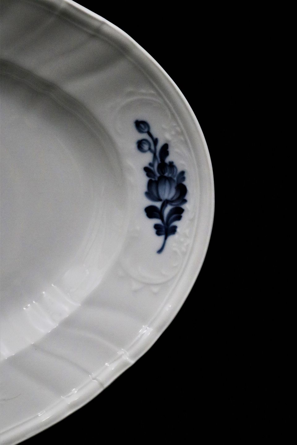 Royal Copenhagen ovalt Juliane Marie Blå Blomst fad.