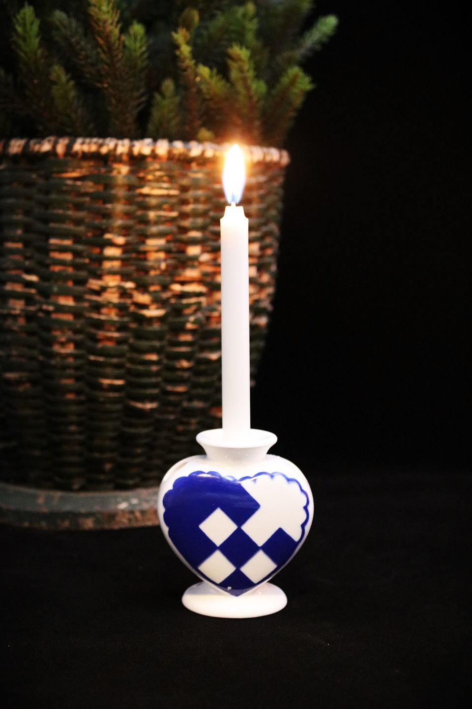 Royal Copenhagen fajance julehjerte i blåt og i rødt til lille stearinlys...