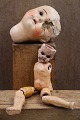 Gammel fransk 1800 tals dukke , hoved med glas øjne , krop og ben i bemalet papmache...