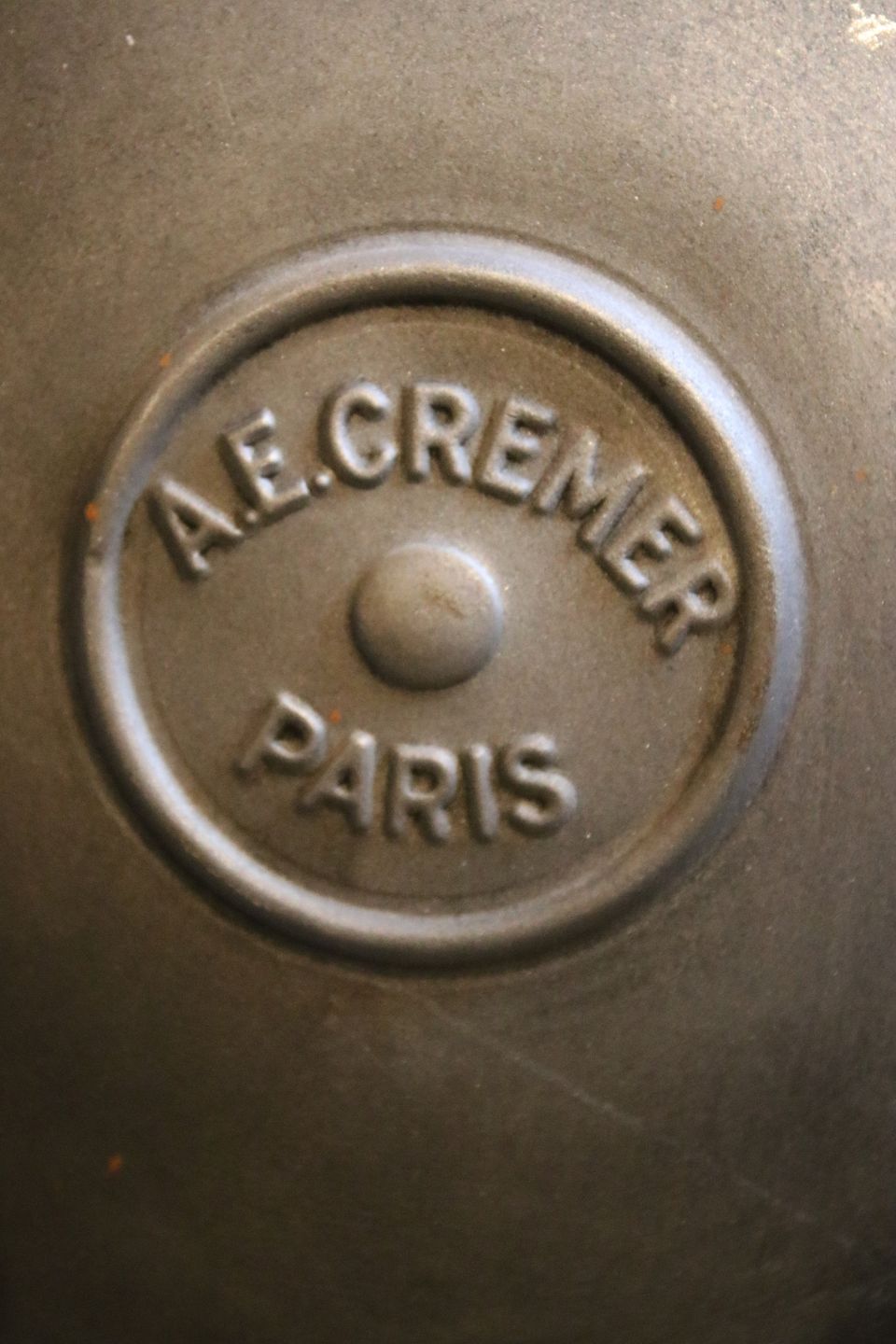 Gammel Fransk projektør af mærket "Cremer-Paris" fra 40érne i afpudset metal med super fin mørk patina.