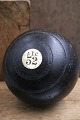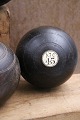 Dekorativ , antik bowling kugle i træ med nummer indlagt i horn. Dia.: 13cm. (3 stk. haves på lager)