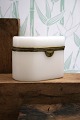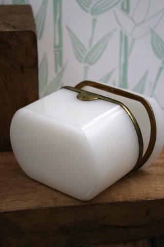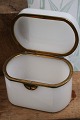 Antikt 1800 tals sukkerskrin i hvid opal glas med bronze montering. H: 10,2cm. L&B: 14,5x10cm. Emne nummer: Sukkerskrin nr.2
