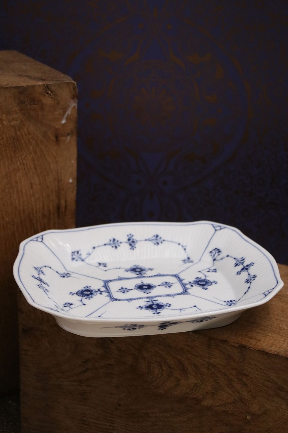 Antik , Musselmalet Riflet brødbakke fra Royal Copenhagen.