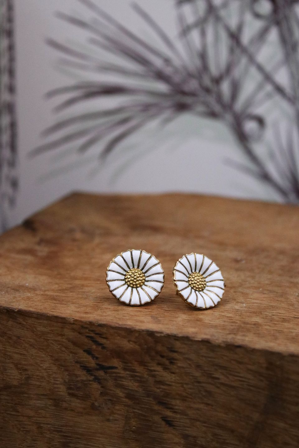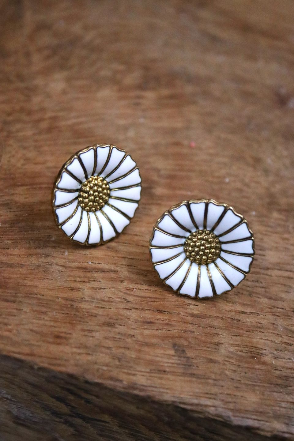 Et par gamle Georg Jensen Marguerit / Daisy ørenringe med øreskik i sterling sølv og hvid emalje...