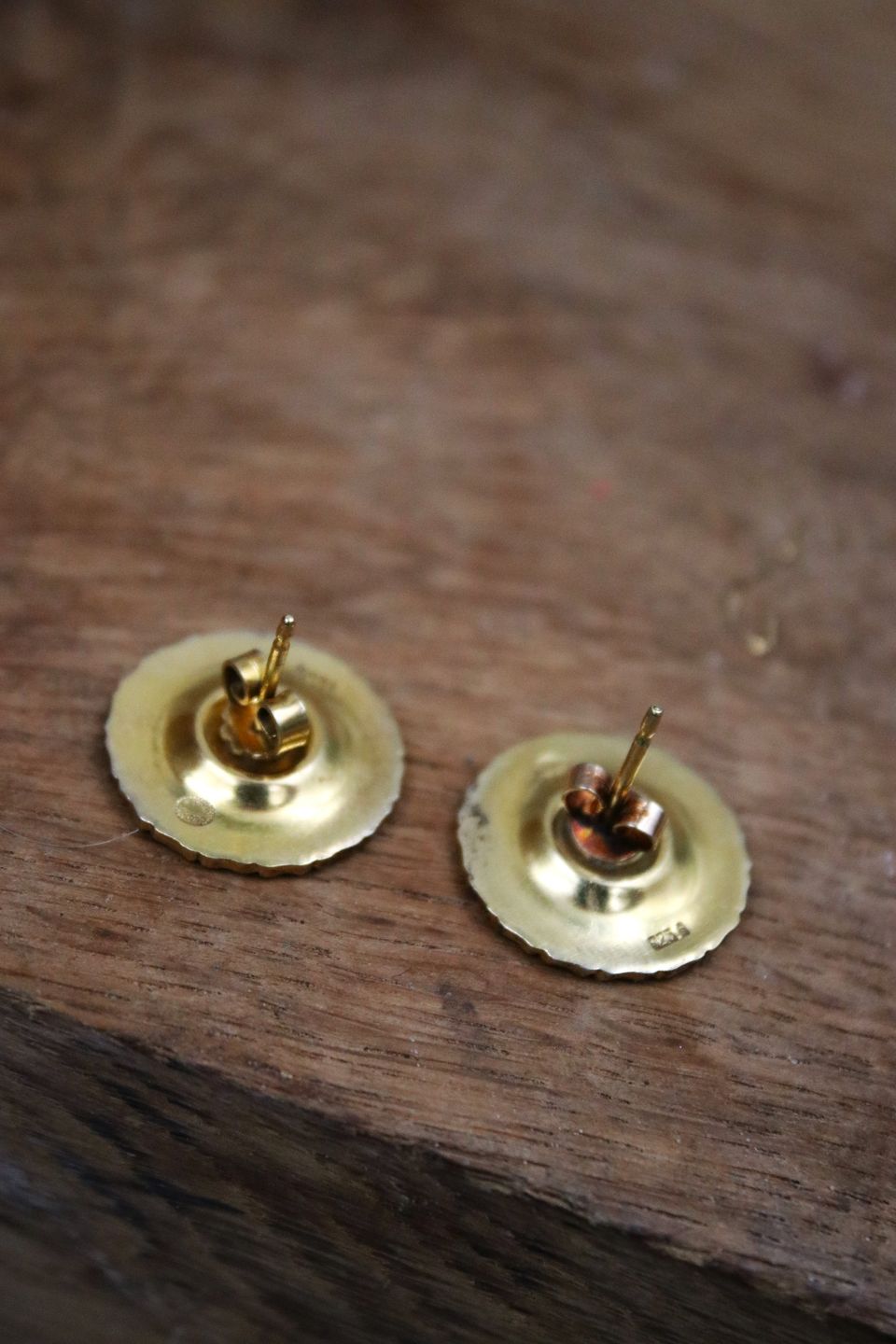 Et par gamle Georg Jensen Marguerit / Daisy ørenringe med øreskik i sterling sølv og hvid emalje. (825 S) Dia.:1,7cm.