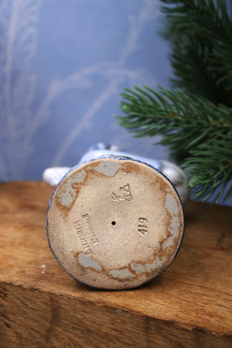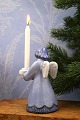 L. Hjorth keramik stor engel med blå glasur der holder et lille stearinlys. Nr.419. H: 14cm. Er i fin stand. Emne nummer: Hjort engel 419. H:14cm.