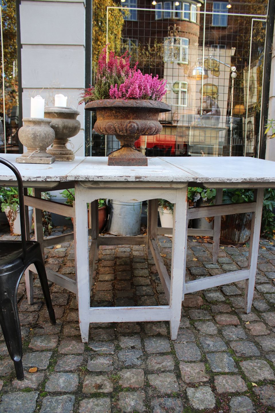 Bordet har 2 klapper og dobbelte udtræksben , så det står meget stabilt.