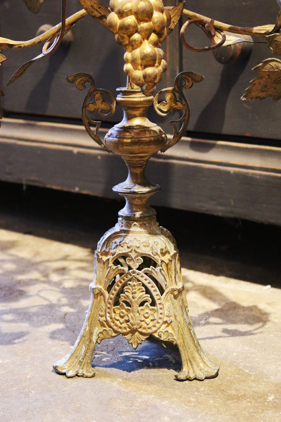 Antik fransk kirkestage i bronze med fin mørk patina.
