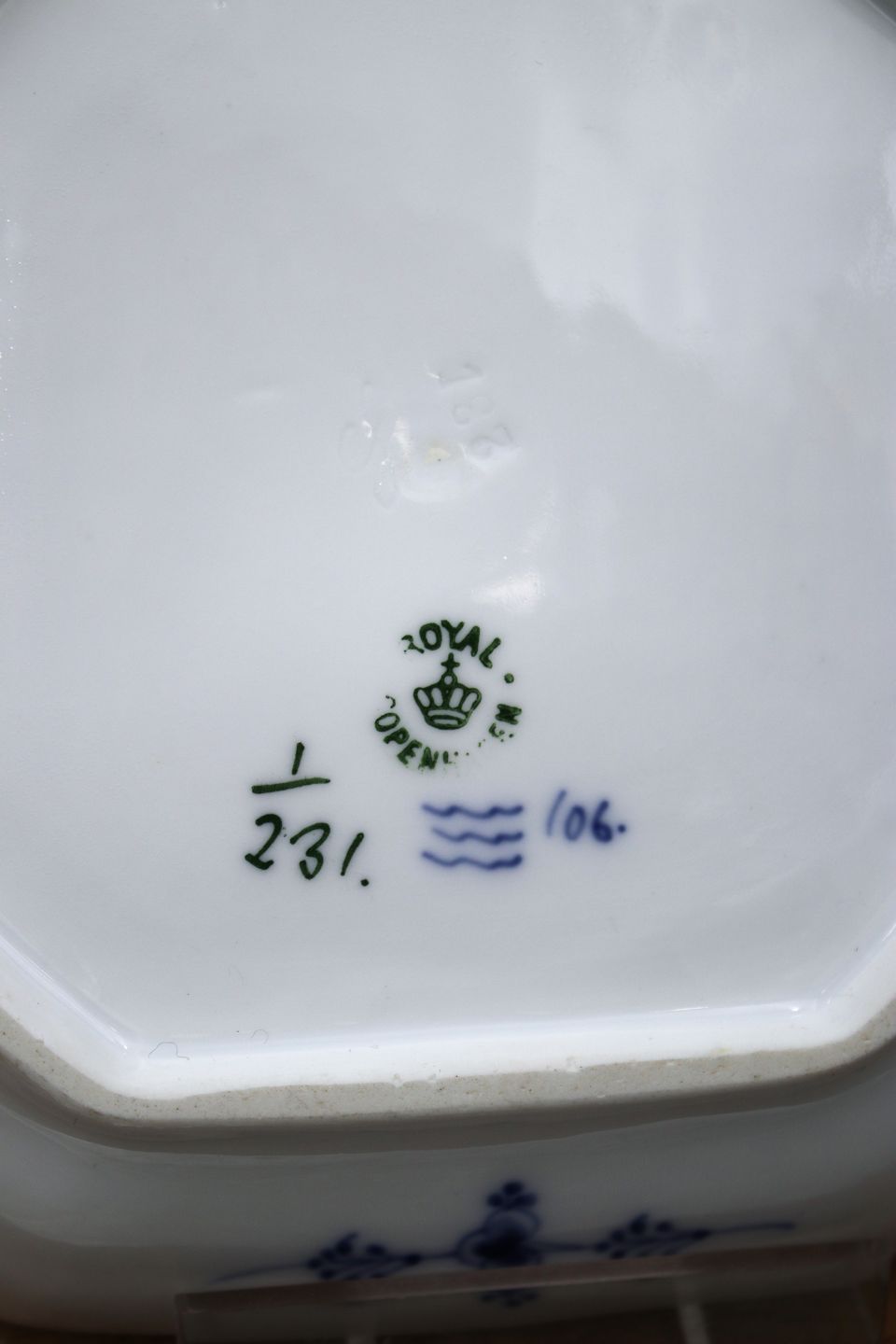 Sjældent , stort 8 kantet sættefad i Musselmalet Riflet fra Royal Copenhagen. 1/231. 1898-1923...