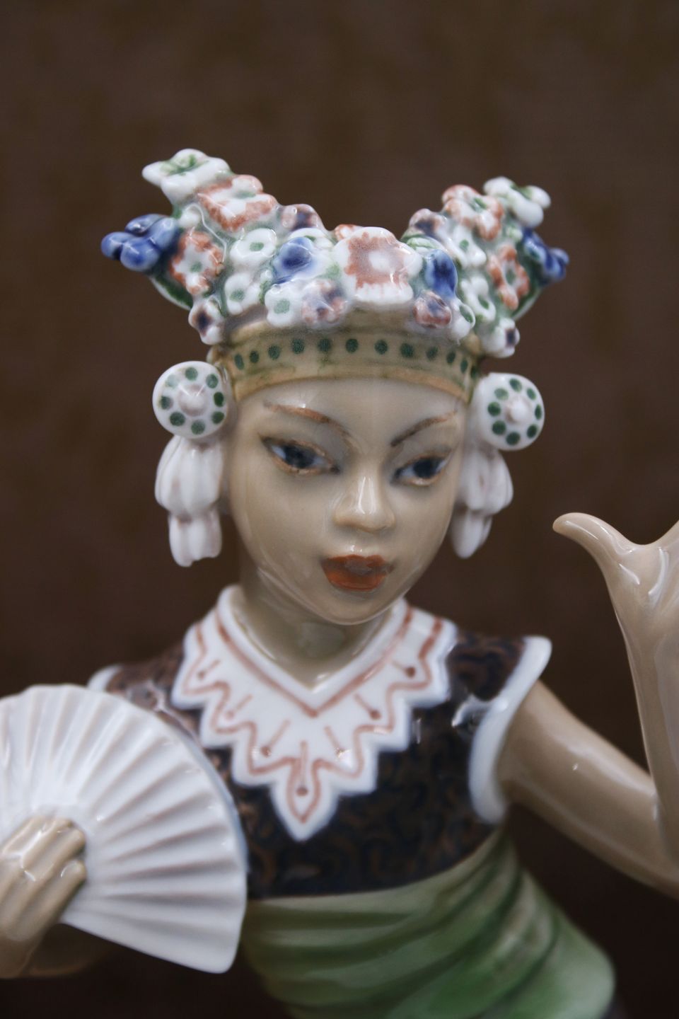 Dahl Jensen orientalsk porcelænsfigur Aju Sitra. H: 18,5cm. Dekorationsnummer: DJ1322. 2.sort. Er i hel og fin stand. Emne nummer: DJ#1322