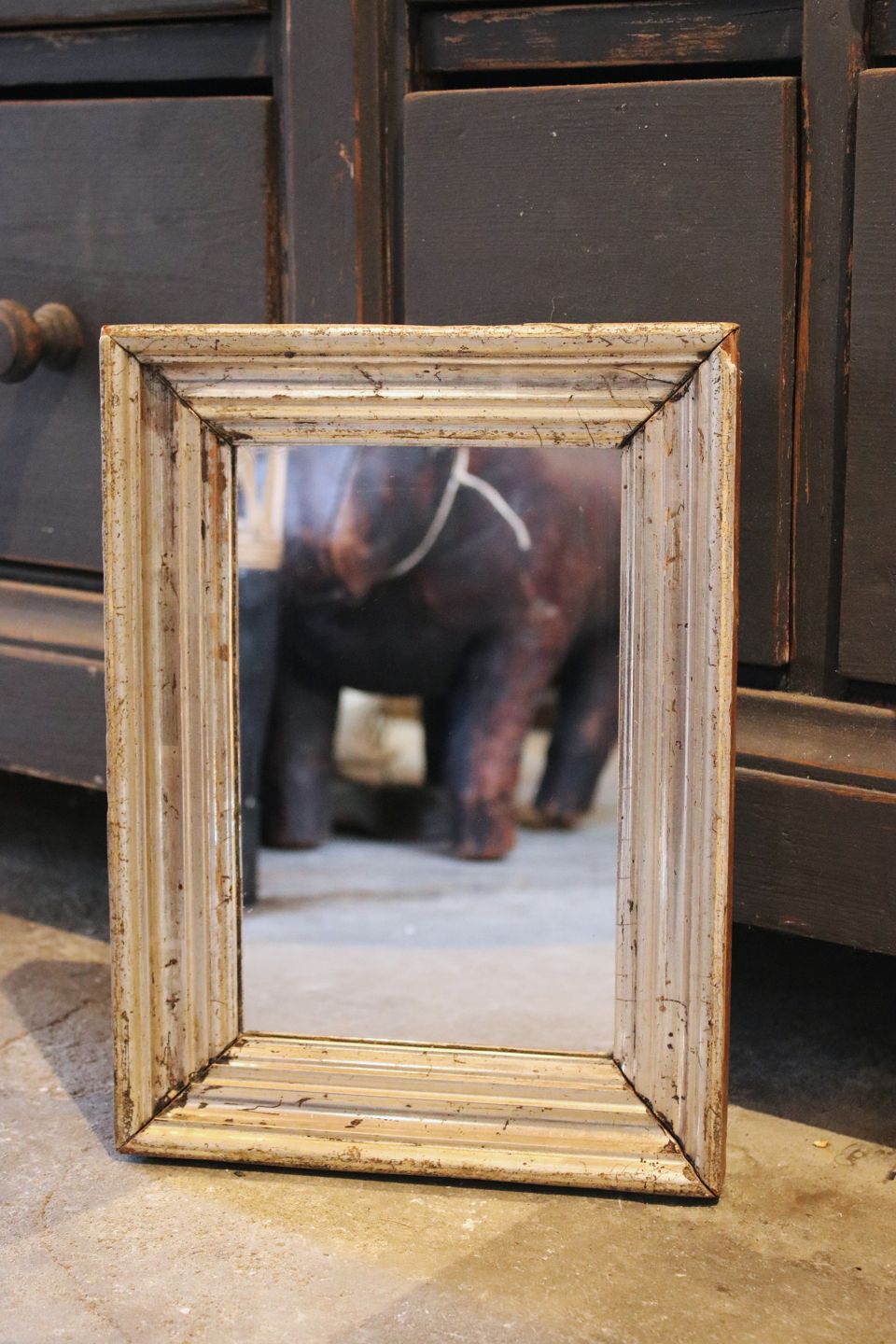 Antik , 1800 tals bred sølvramme med gammelt spejlglas. (Træramme med original gammel sølvbelægning med en fin patina) 30x22 cm.