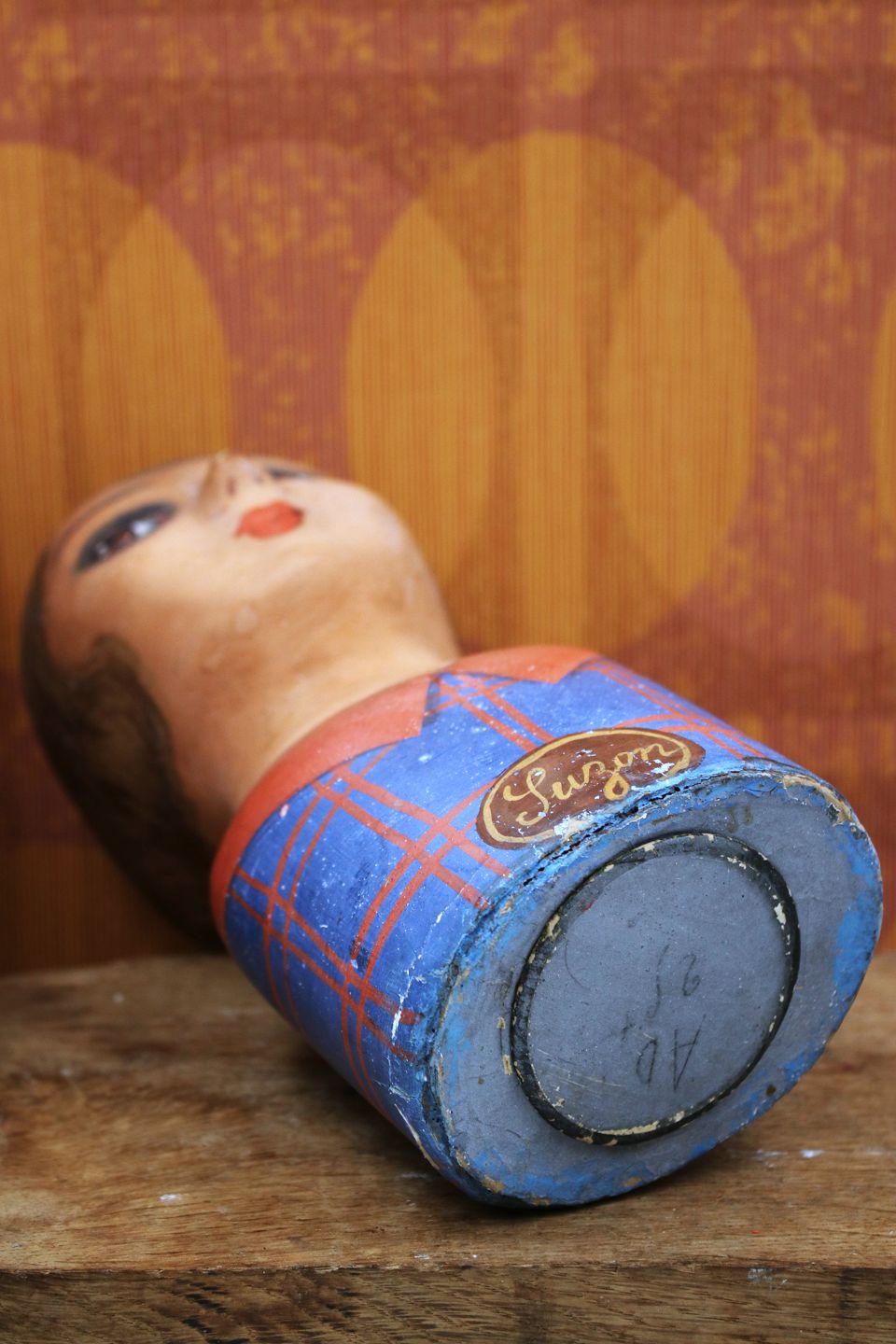 i bemalet pap-maché med en fin gammel patina. H: 23cm.