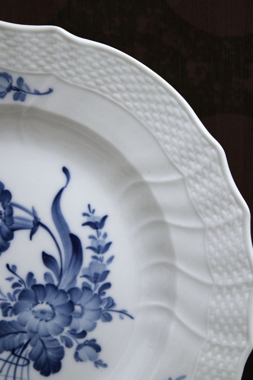 Royal Copenhagen Blå Blomst Svejfet stor middagstallerken.